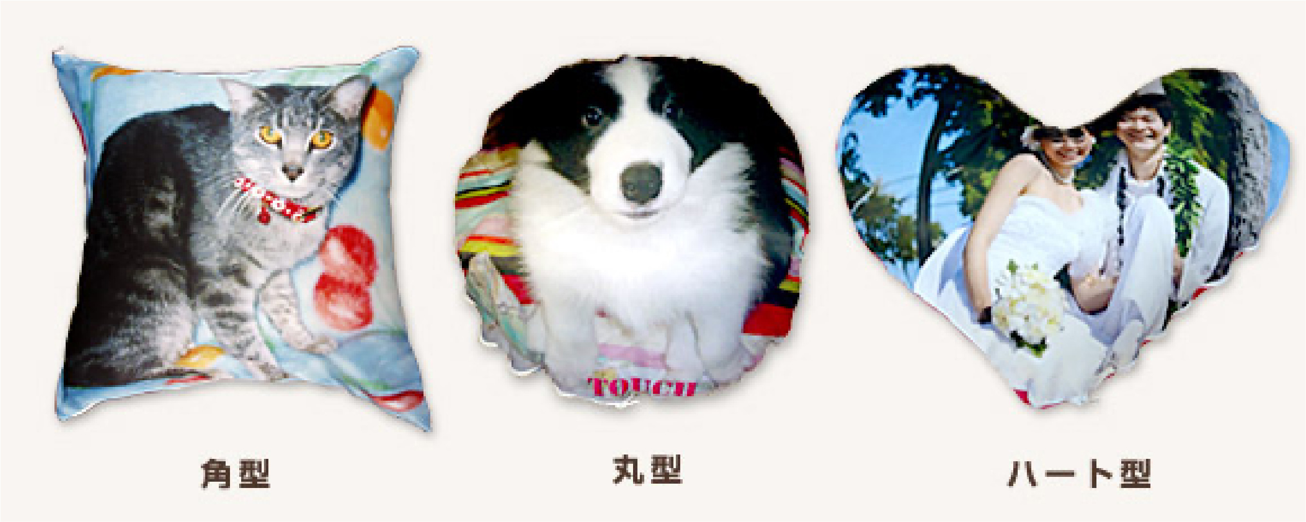 お祝いやプレゼントにお好きな写真やイラスト、また写真からできる似顔絵のクッションはいかがでしょうか。